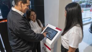 Como parte de esta transformación, los nuevos showrooms incorporan una nueva fascia de marca y diversas zonas de digitalización dentro de los espacios de atención, entre ellas el Hero Model Wall, tótems digitales y pantallas informativas que permiten brindar información de manera dinámica y acompañar a los clientes durante su proceso de decisión.