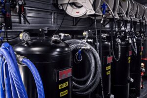 Los Talleres Móviles Scania están completamente equipados para operar como unidades autónomas en campo. Cuentan con generador eléctrico, compresor de aire, tanques de lubricantes y grasas, mesas de trabajo, herramientas universales y especiales, además de grúa, prensa hidráulica y sistemas de lubricación expresos, lo que les permite ejecutar intervenciones con altos estándares técnicos directamente en la operación del cliente.